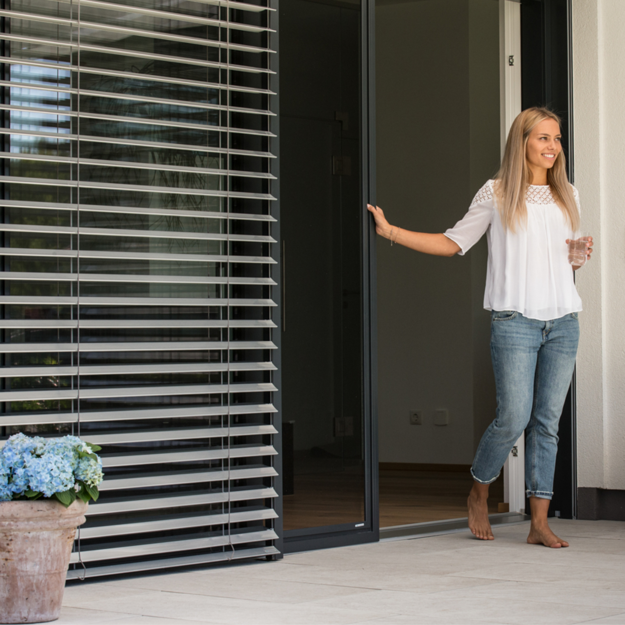 Als integraler Bestandteil von Außenjalousien sorgen sie für hervorragende Transparenz und Licht- sowie Luftdurchläßigkeit. In Ausführungen mit Fix-Rahmen, Dren- und Pendeltür, Schiebetür und Plissee.